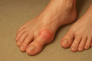 여러 관절에서 발생할 수 있지만 엄지발가락에 특히 잘 생기는 것으로 알려져 있습니다. 발끝은 심장에서 멀고 체온이 상대적으로 낮아 요산 결정이 만들어지기 쉬운 환경이 될 수 있어, 마치 차가운 유리잔 가장자리에 성에가 먼저 맺히는 것처럼 이 부위가 표적이 되곤 합니다. 그래서 밤사이 갑자기 엄지발가락 뿌리가 붓고 붉어지는 양상은 매우 전형적인 모습으로 여겨집니다.